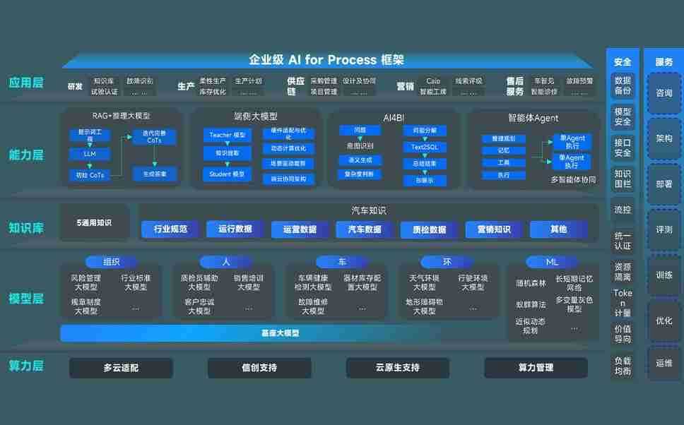 端到端的一站式AI工作空间深度融合了从企业战略规划到日常经营的全流程业务板块,,,,定向解决车企内部领域多、、、部门多、、链条长、、、场景碎片化等难题,,,,支持车企快速构建以AI为核心的生产力写作体系,,实现任务执行与AI能力的无缝集成与交互